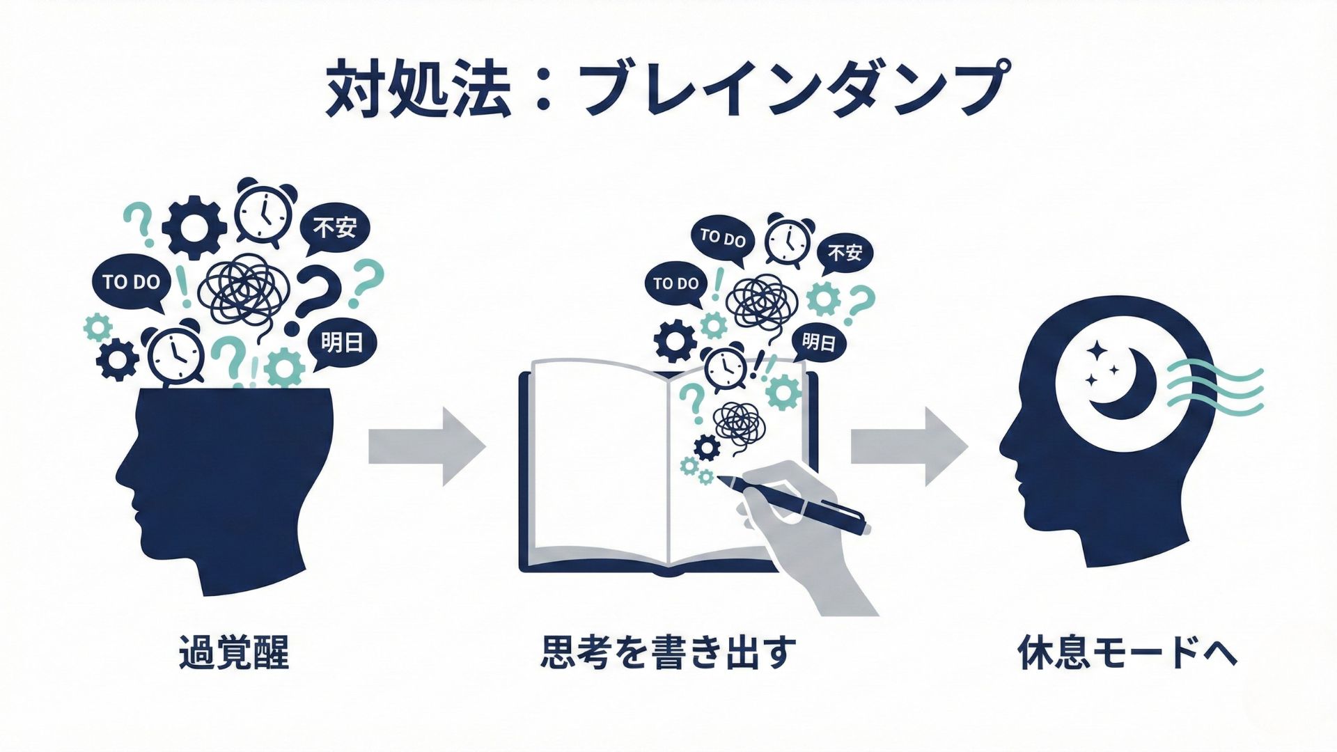 今すぐ脳の興奮を鎮めたいのであれば、頭の中の思考をすべて紙に書き出す「ブレインダンプ」を勧めます。