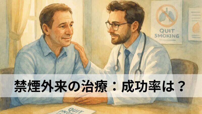医療機関の禁煙外来を受診し、バレニクリンやニコチンパッチなどの治療を受けた場合、短期的には約7割の患者が禁煙に成功したと報告されています。