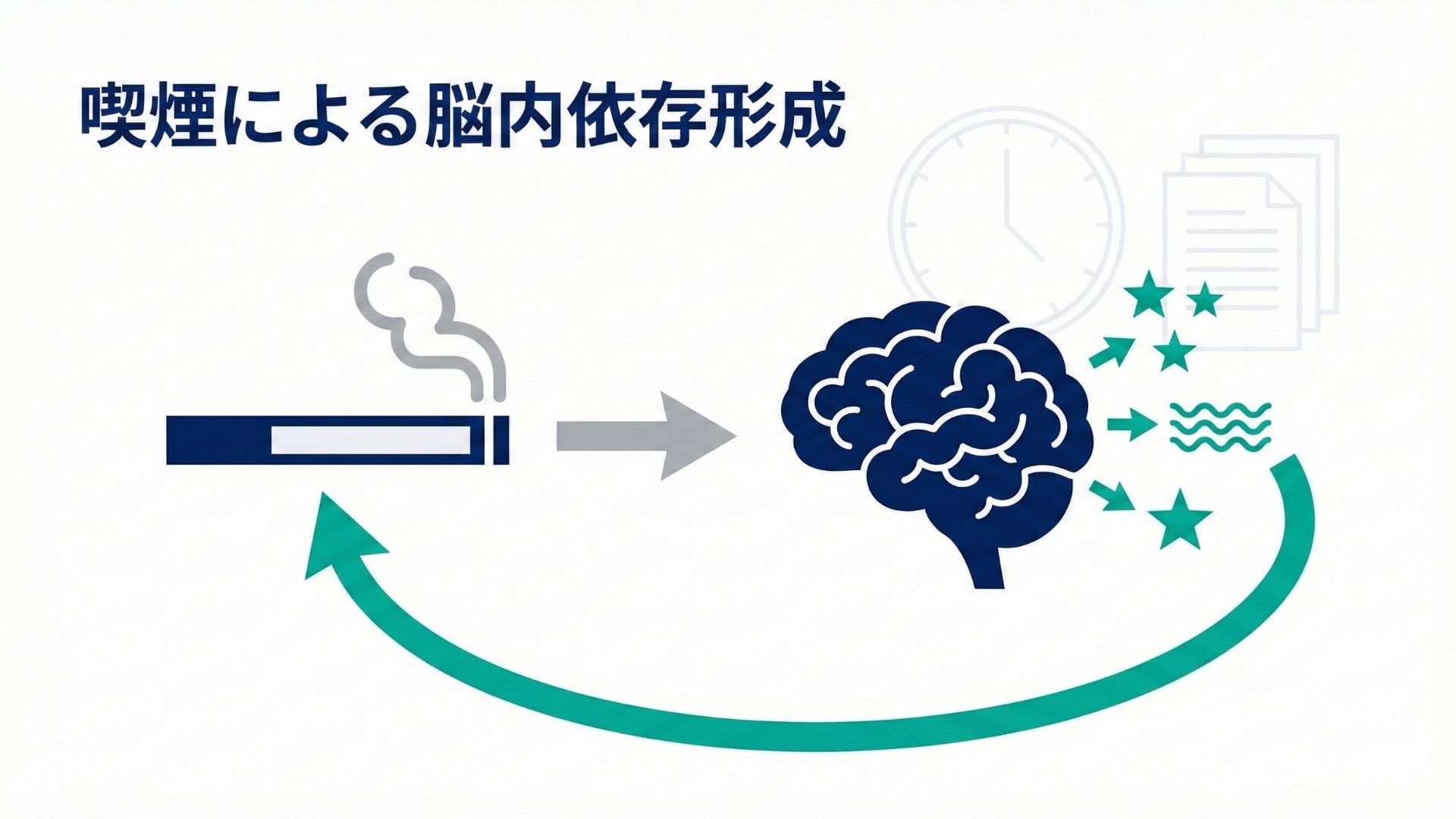 習慣としてタバコを吸っていまう状況とは異なり、ニコチンによって脳の神経回路が変化し、「タバコを吸いたい」という衝動が制御不能になるのが特徴です。喫煙を継続することで、一時的なリラックス効果や快感を得られるため、無意識のうちに依存が深まっていきます。