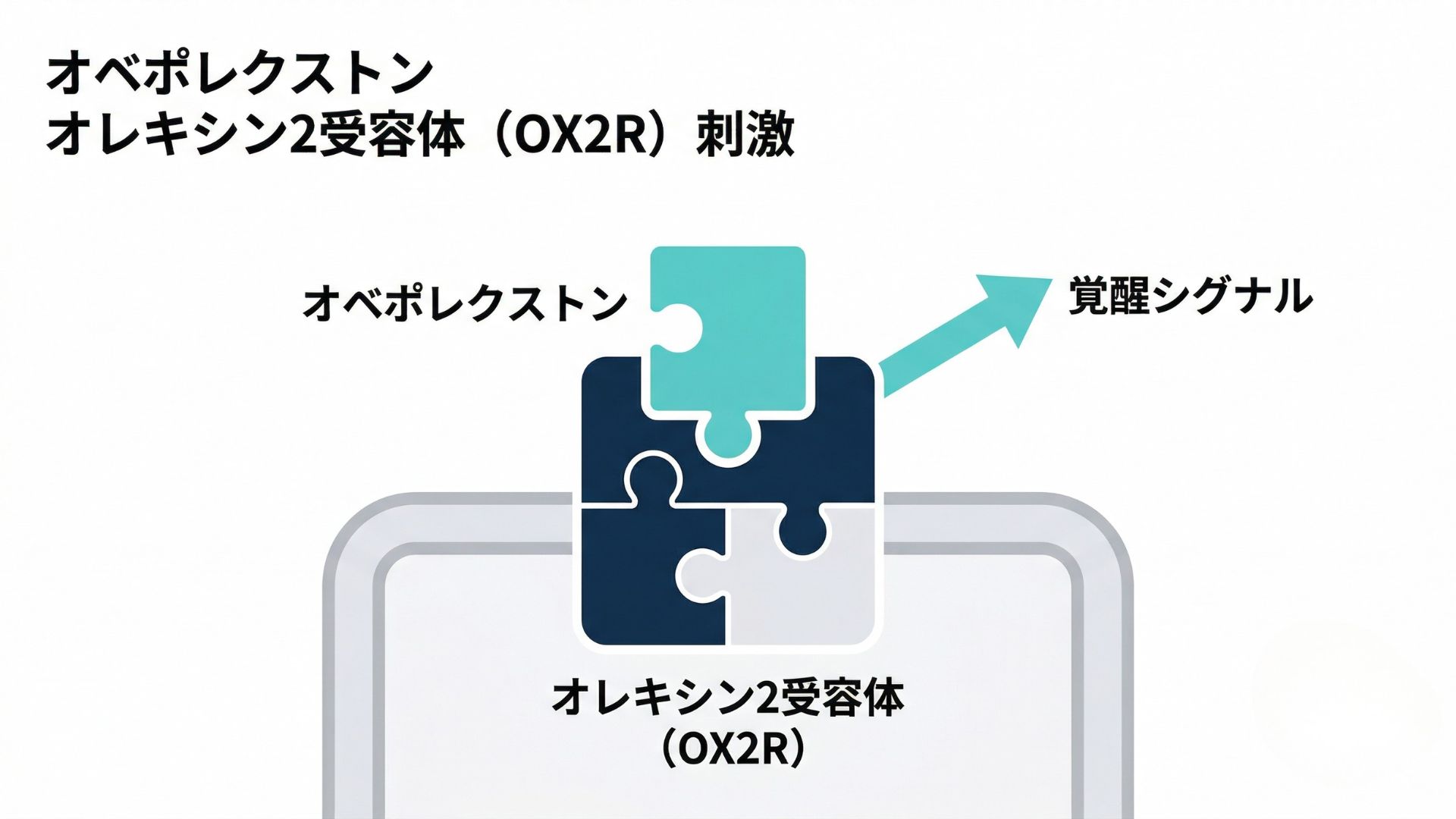 オベポレクストンは経口のオレキシン2受容体(OX2R)選択的作動薬です。作用機序を簡単に言えば、オベポレクストンがオレキシンの代わりにオレキシン2受容体を直接刺激して、オレキシン系のシグナル伝達を促します。その結果、覚醒を保てるようにする仕組みです。