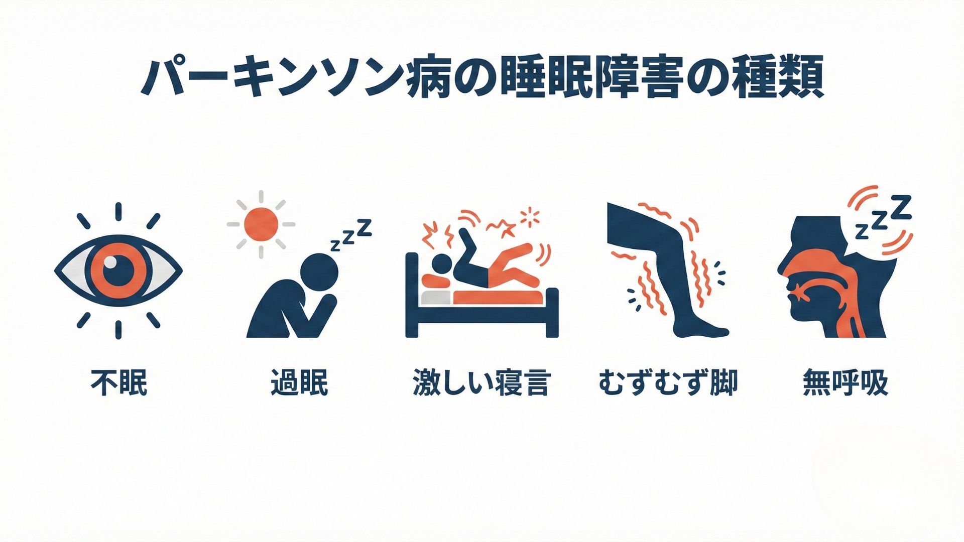 - パーキンソン病で眠れない理由は?睡眠異常の種類