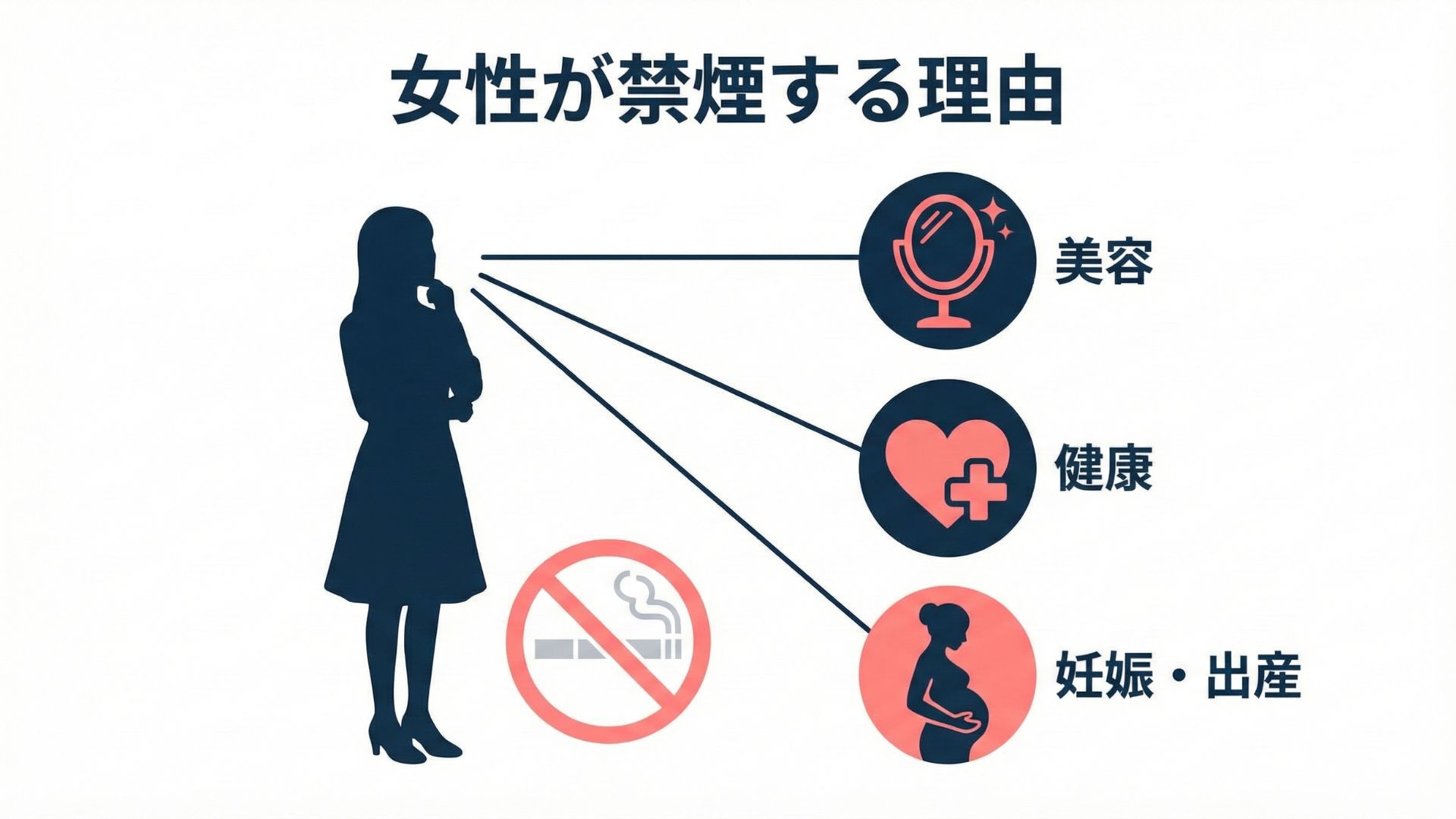 女性が禁煙を考える理由は人それぞれですが、特に美容・健康・妊娠・出産への影響を心配する声が多く聞かれます。