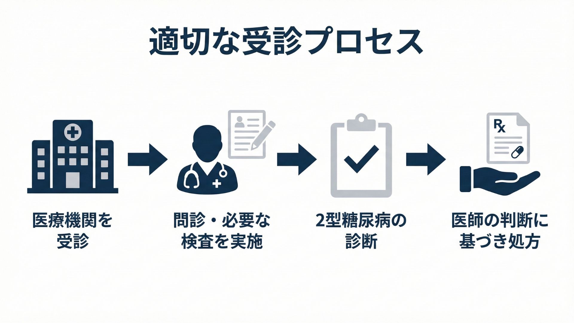 血糖値やHbA1c、既往歴を確認し、2型糖尿病の診断を確定し、医学的にリベルサスによる治療が適切であるかを判定します。