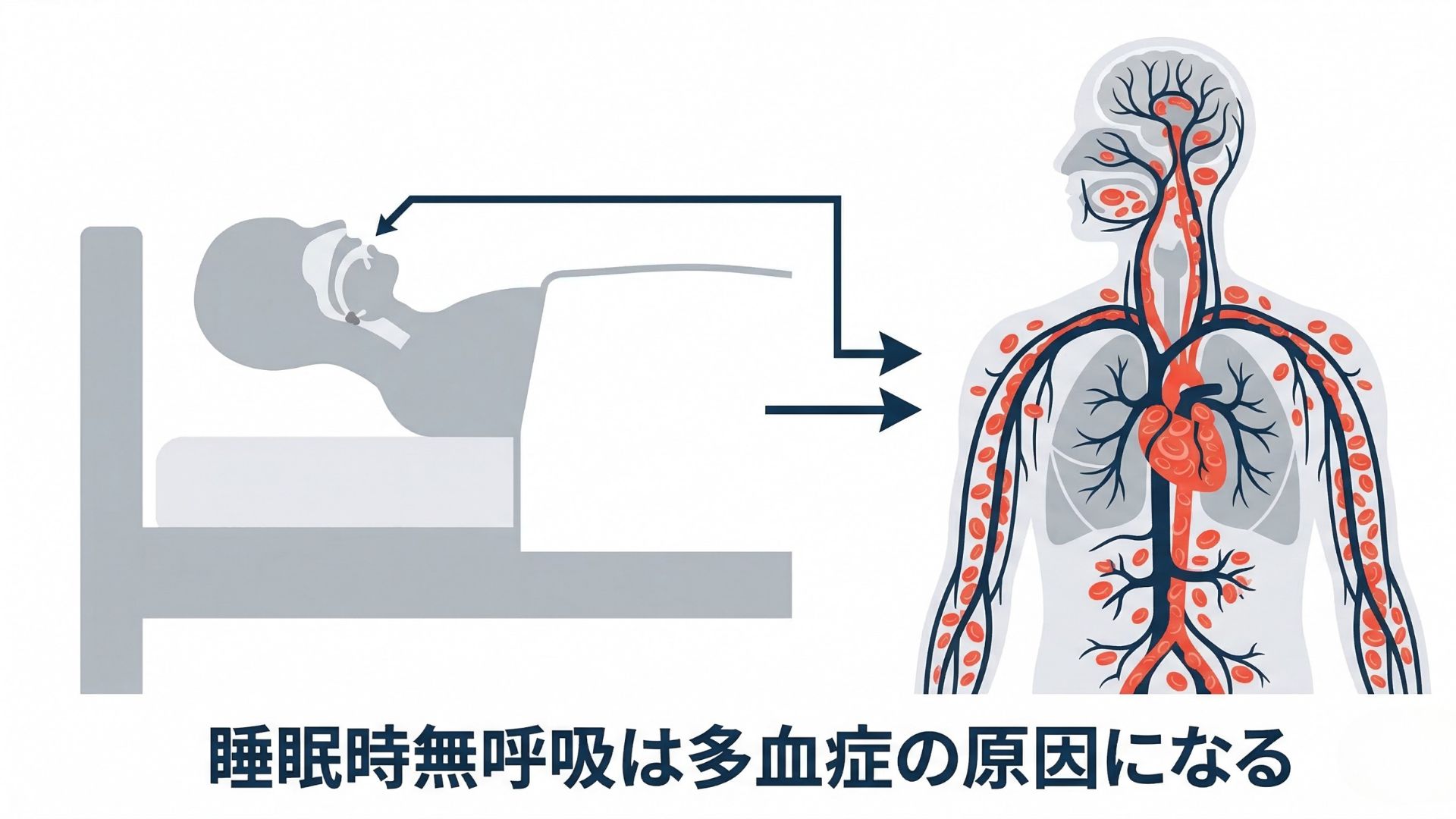 結論から言うと、睡眠時無呼吸症候群は多血症の原因になる可能性があります。