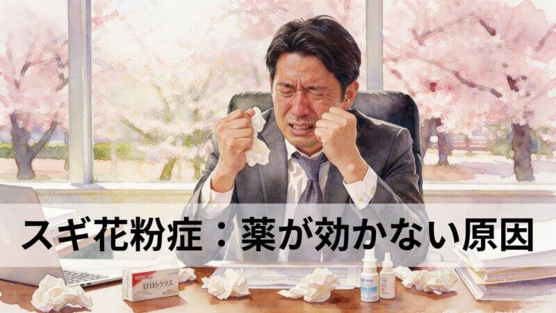 スギ花粉症は体質だから仕方ないと思われがちですが、実際には薬の選び方や使い方で症状が大きく変わります。「効かない」と感じたまま放置すると、睡眠の質が低下し、集中力や仕事のパフォーマンスにも影響します。